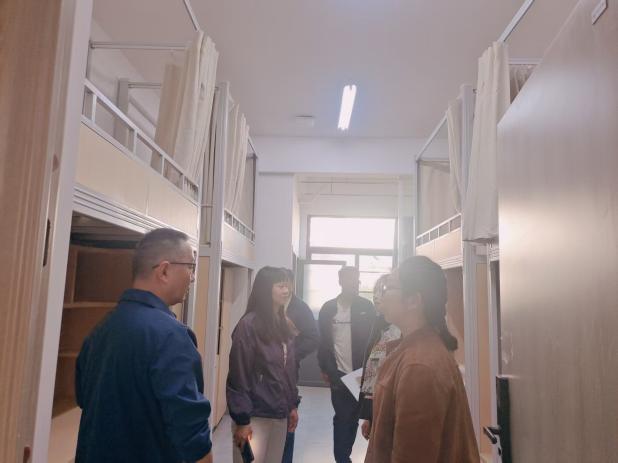 会后,云南交通职业技术学院调研团队前往我校桂苑2幢学生公寓和楸苑5幢“一站式”学生社区进行实地调研。
